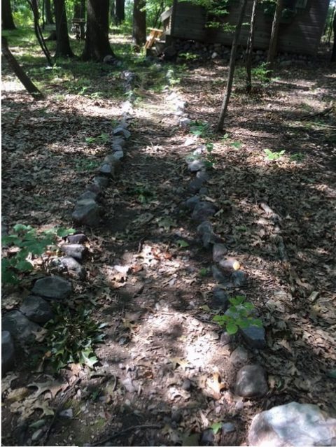 I love paths. We have one that goes to the field for our tractor, but the best ones are those I’ve made to my writing/meditation cabin, and the one I use to walk to the field. These two I’ve lined with rocks and as I stroll by I’m always amazed by the large roots that grow above ground. Different and yet so eye catching. It took a long while to clear the brush away, find and place the stones alongside, and then try to keep them clear enough to follow over the years.